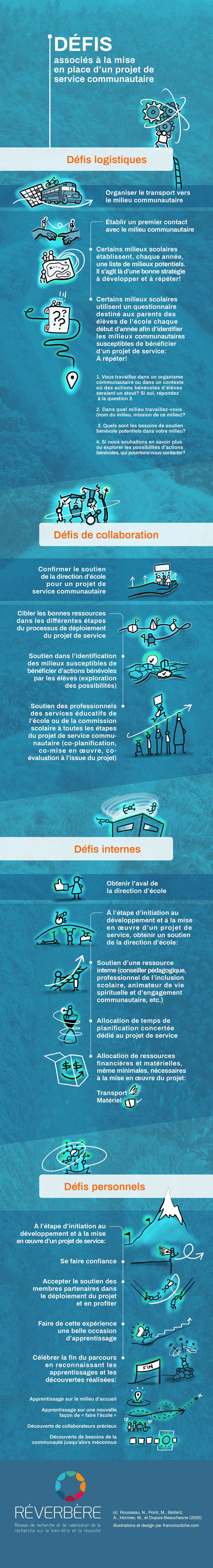 De quels défis parlons-nous? Pour prendre conscience des défis que vous pourriez rencontrer dans un projet de service communautaire, nous vous avons préparé cet outil, ce visuel, pour que vous puissiez y arriver rapidement et sans effort, ou presque!