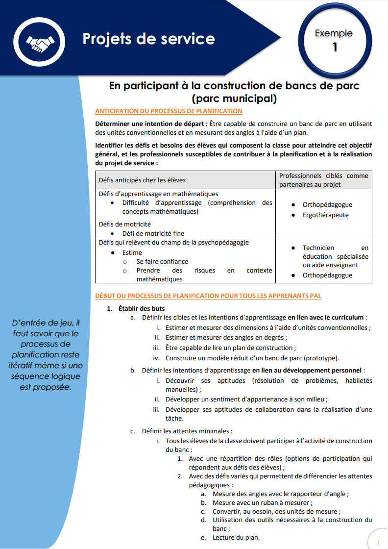 L'identification des besoins des élèves va vous permettre de valider si votre équipe de collaborateurs est complète. Vous pourrez aussi mieux cibler les intentions d'apprentissage visées par votre projet de service.