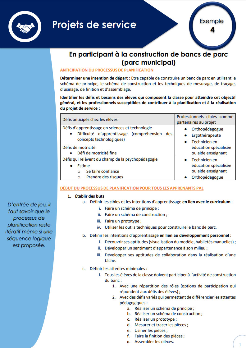 L'inclusion scolaire est fondamentale dans ce projet. C'est à la suite de plusieurs années de recherche que nous en sommes arrivés à développer et proposer cet outil, cette approche concrète du projet de service communautaire.